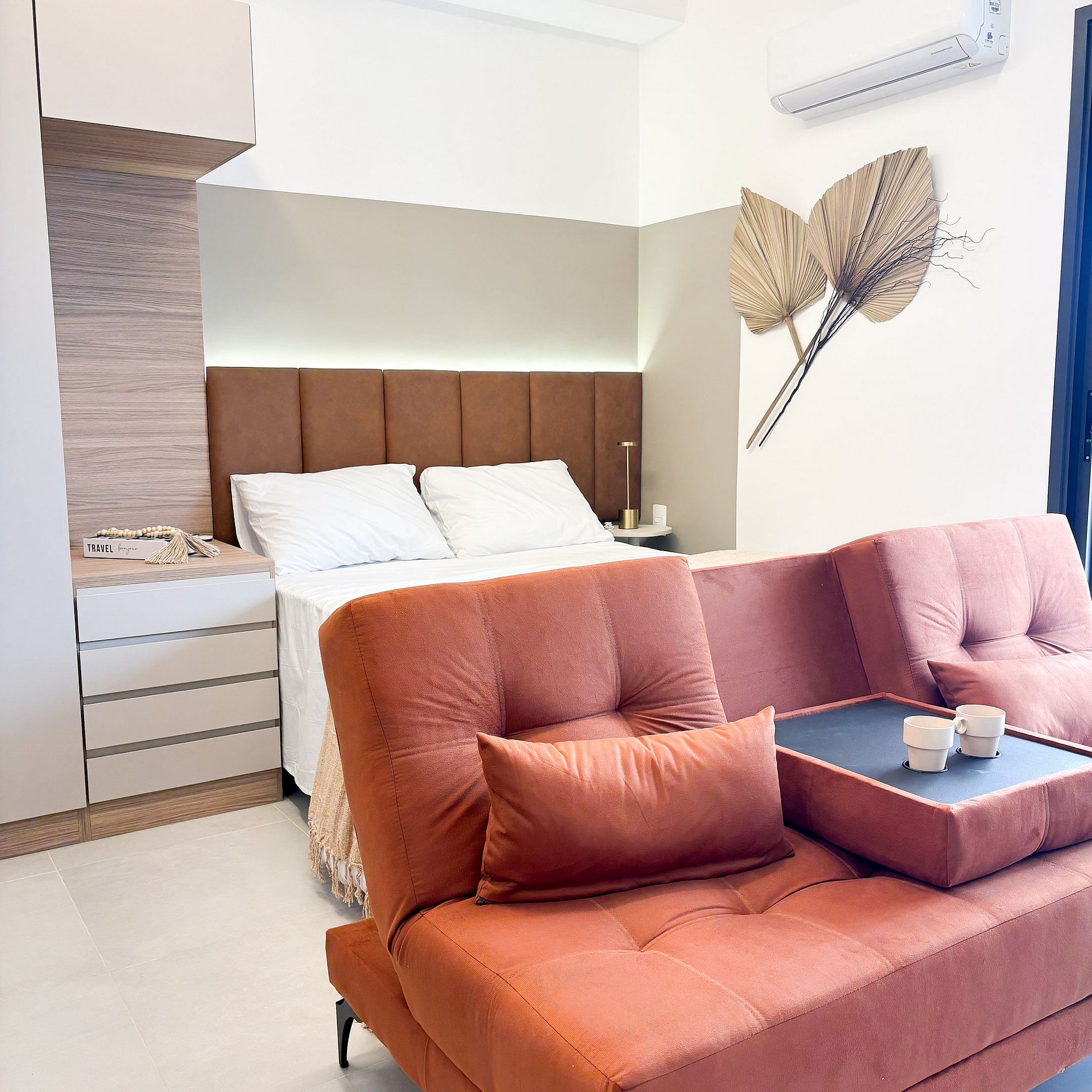 * Área de trabalho dedicada com cadeira ergonômica, ideal para quem precisa conciliar trabalho e lazer